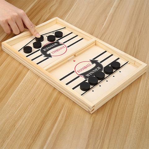 How does it work? Each player takes 5 pucks on his side. To start a round, players count to 3 and Go! Players start shooting the pucks simultaneously. Pass the pucks only through the gate of the board. The first player to pass all the pucks wins the round. Children will forget their screens?with this new addictive game. Forget old games?and play all?day long with your new best friend. Father and sons will have again good times together. And mums and girls too, for sure. With your grandchildren, they will love this game. Gameplay: 1. Each team is divided into 5 pieces; 2.Hold your fingers on the pieces and pull them back with rubber bands; 3. Release your fingers to eject the pieces forward; 4. Aim at the hole and shoot through the hole to the opponent. If you completely occupy the opponent, you can take 3 2 Win system; 5. Proper interaction with parents is an artifact for friends and family to decompress and entertain. 6. A fast and exciting game of chess, always ready for your hand. Game?Size: 35*22*2.5cm