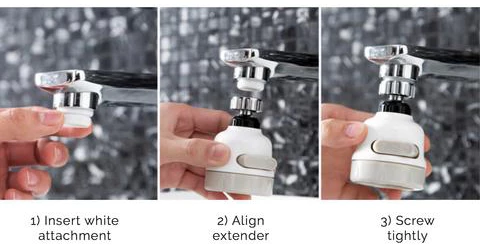 360 degrees rotation,?it allows you to point the stream of water where you need it! With 3 spray modes to select from,?you get full control of both the direction and strength! Select from Jet, Jet + Shower, and Shower modes Freely rotatable to up to 360 degrees for?easy multi-angle cleaning! Comes with threaded mouth design?that prevents The?Sink Spray Tap?from falling off! PROVIDES A SOFT JET OF A WATER STREAM,?YOU DON'T HAVE TO WORRY ABOUT WATER SPLASHING! Material: ABS; Package Weight:0.1Kg; Size : 8.5 x 5.3;