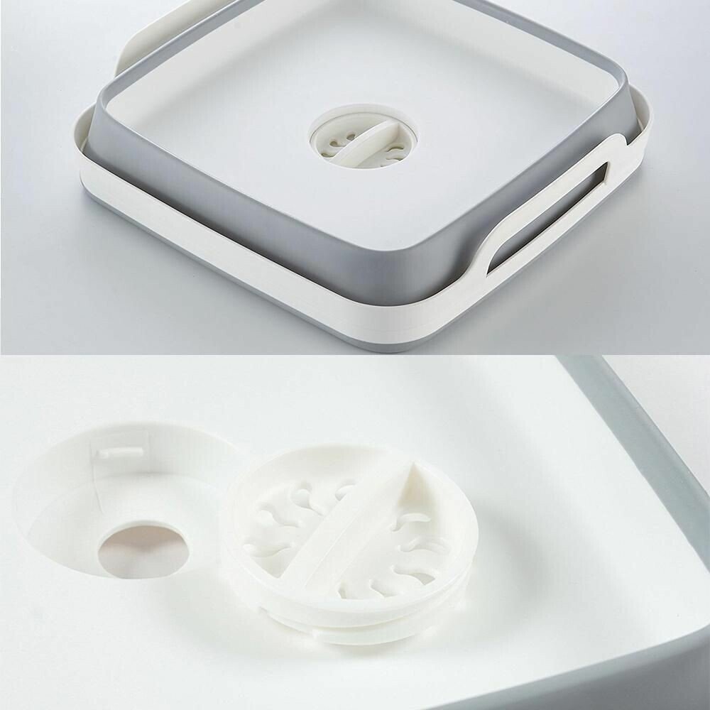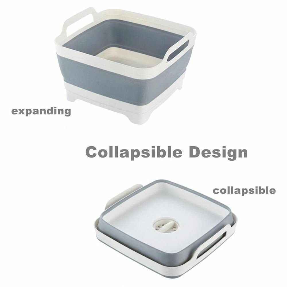 SAFETY: Food grade material, so you can use it without any worries. FOLDABLE: The versatile bin is expandable and collapses to 1/3 (about 2.8 inch) of its original height.CONVENIENT: Made of sturdy plastic, with convenient handles, soft and anti-skidding, which makes it easier to lift and carry. Built-in drain, just twist off and take out the drain to discard the dirty water instead of lifting and pouring. MULTIFARIOUS: This colanders can meet all your kitchen straining needs. Fruit and vegetable washing tube + drainer sink+storage basket. For outdoor needs. This collapsible colander can work for ice and beer at the garden bench and anywhere; HUMANE DESIGN: Designed with double carry handle, easy to lifting; Four heightened standing leg is anti-slip, designed to keep the dishpan steady and firmly; Light weight,great for home use or camping. Foldable Food Strainers, one Basket for Different uses - foldable dish tub & storage + fruit and vegetable washing & drainer + kitchen supplies storage; making your life easier and saving you much needed space, time and effort.