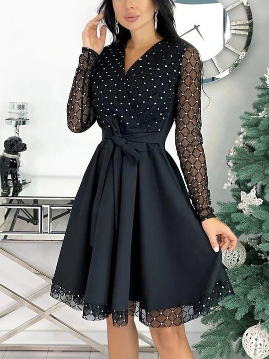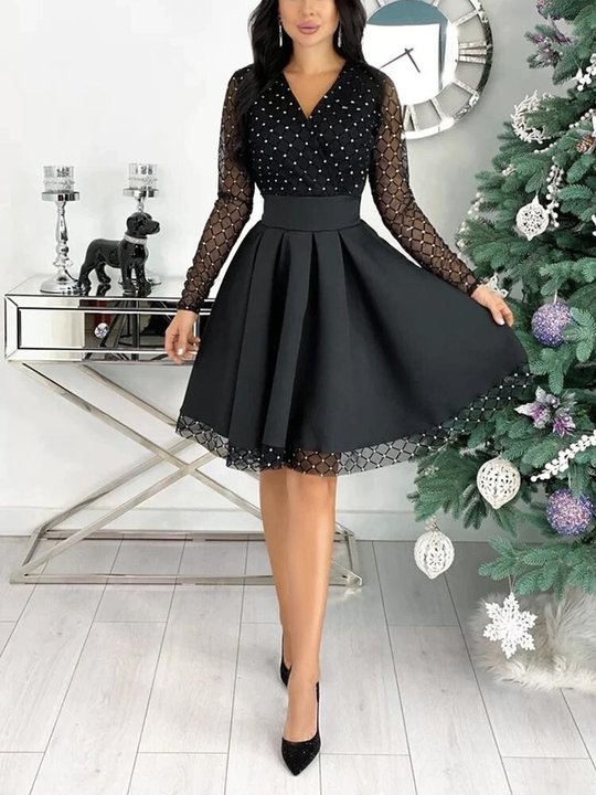 Collar: V-Neck; Sleeve Length: Long Sleeve; Dress Length: Mini Dress; Material: 40% Rayon, 60% Cotton; Color: as the picture show; Washing mode: Hand Washing Cold or Dry Clean; Package include: 1PC Women Dress.