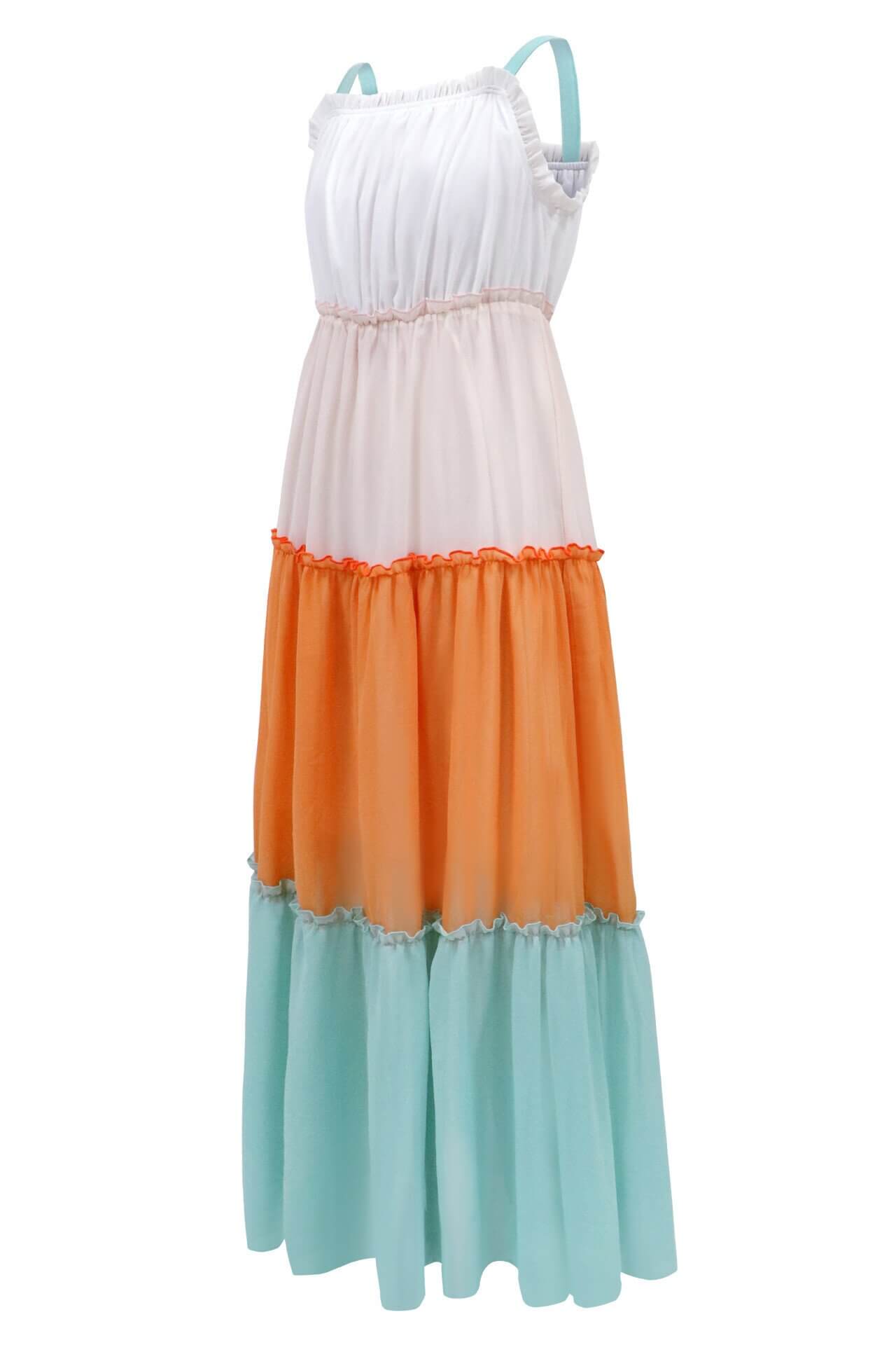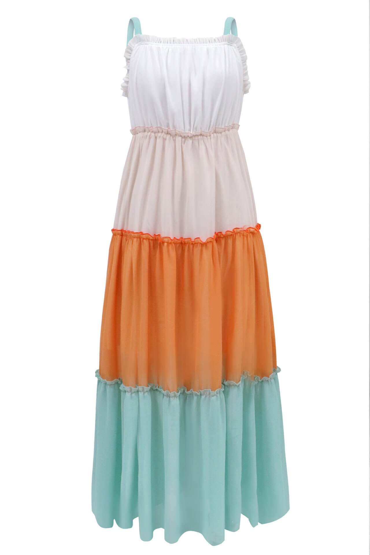 Summer Sleeveless Spaghetti Stitching Color Maxi Dress