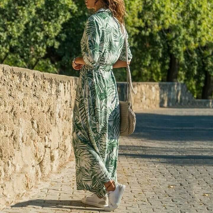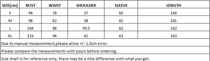 Collar: V-Neck; Sleeve Length: Long Sleeve; Dress Length: Maxi Dress; Pattern Type: A-Line; Material: Polyester; Color: as the picture show; Washing mode: Hand Wash, Dry Flat; Package include: 1PC Women Dress.